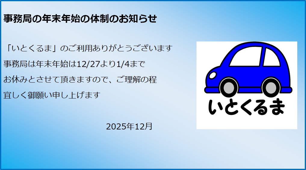 - 事務局の年末年始体制のお知らせ